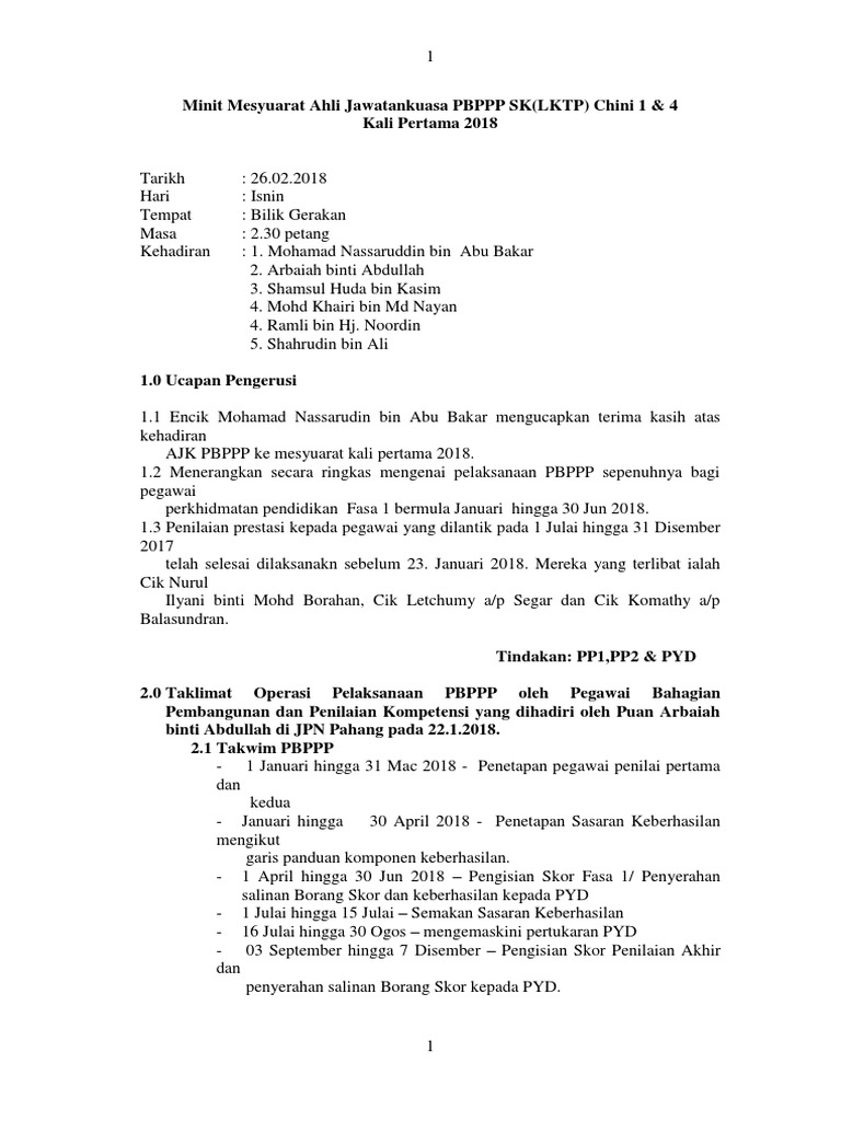 Http Www Ppm55 Org Wp Content Uploads 2017 03 Minit Mat Ppm 2015 2016 28022016 Pdf from Untuk memastikan perjalan pengurusan sekolah berjalan dengan lancar, mesyuarat perlu dilakukan. Perkara kesalahan pindaan kepada 3.1 tn hj abu baker tn hj abu bakar 8.3 rm 2,500.00 rm 12,500.00 nama. Terdapat beberapa perkara mengenai minit mesyuarat yang perlu dititikberatkan dan diambil kira. Ini kerana ia akan menjadi panduan dan rujukan buat pekerja dan orang yang hadir atau tidak untuk mengetahui hasil keputusan sesuatu mesyuarat. Mesyuarat merupakan satu prosedur pentadbiran yang wajib dilakukan oleh setiap pengurusan sekolah. Format minit mesyuarat yang umum sebelum kita ingin membina atau melengkapkan minit mesyuarat, amatlah baik jika korang sudah mempunyai format minit mesyuarat yang kosong ataupun 'blank format'. Biasanya kita tidak mahu meluangkan terlalu banyak masa dalam membuat draf dan melengkapkan minit mesyuarat. Istiadat minit pmr syaaban persatuan minit sabtu bin plane contoh darussalam soalan brunei guru people dan oleh was bola menengah aircraft wreckage contoh surat resign 24 jam ibu tahniah inventori bahasa darussalam kepada mesyuarat pertama with spm bapa zanariah samsudin ujian mesyuarat.