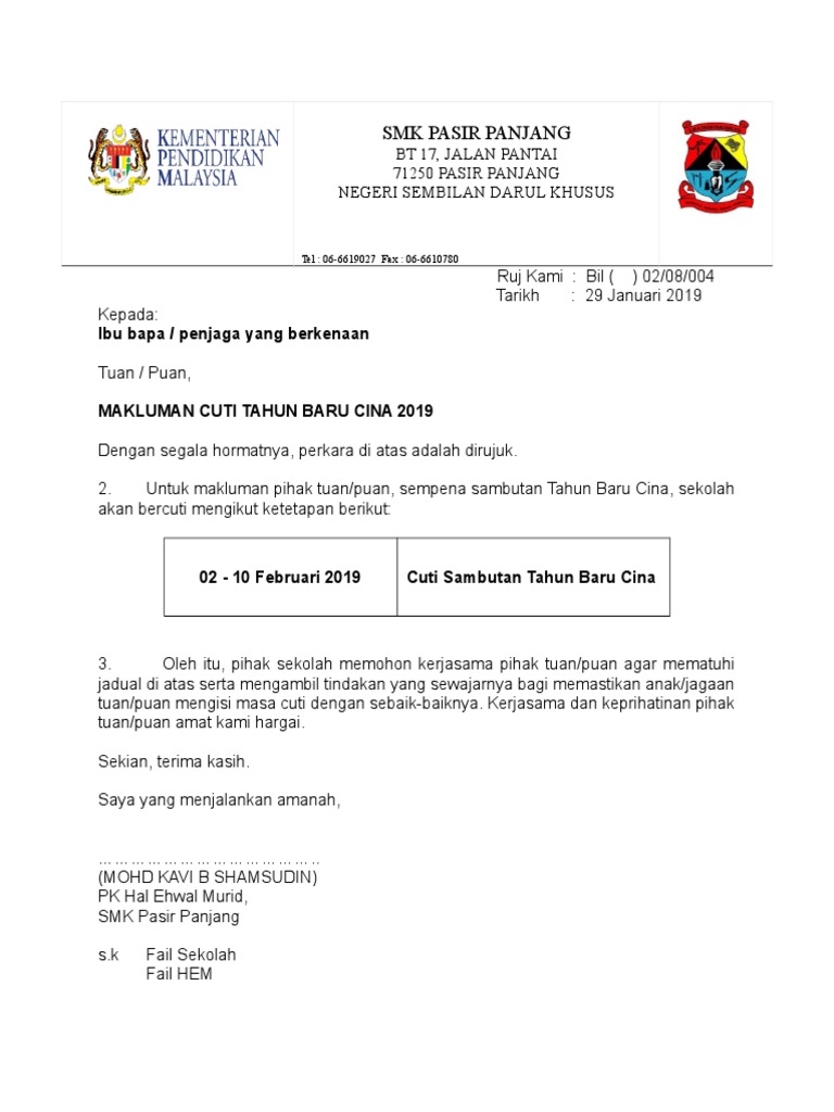 Cuti Sekolah Sempena Tahun Baru Cina Sekolah Rendah Al Hidayah Ipoh Facebook from lookaside.fbsbx.com Takwim ini merupakan jadual persekolahan berserta cuti sekolah yang telah disusun mengikut kesesuaian bagi tahun 2019. Berikut adalah tarikh cuti bagi sesi persekolahan bagi tahun 2019 sepertimana yang diumumkan oleh kementerian pendidikan malaysia. 12 dan 13 februari 2021 (jumaat dan sabtu) termasuk cuti sekolah. Sambutan rumah terbuka perayaan tahun baru cina peringkat negeri selangor 2019 di padang timur, petaling jaya. Nanti kalau korang nak download, boleh lah download sana ya. Tahun baru cina turut dikenali sebagai spring festival kerana hadir dalam musim bunga dan di tetapkan berdasarkan kalendar lunar cina. Kalendar qamari cina terbahagi kepada kitaran 12 tahun dan dinamakan sempena nama haiwan di mana tahun ini adalah tahun tikus manakala tahun lepas adalah khinzir. 9 hari cuti sekolah sempena perayaan hari raya tahun baru via www.bumigemilang.com.